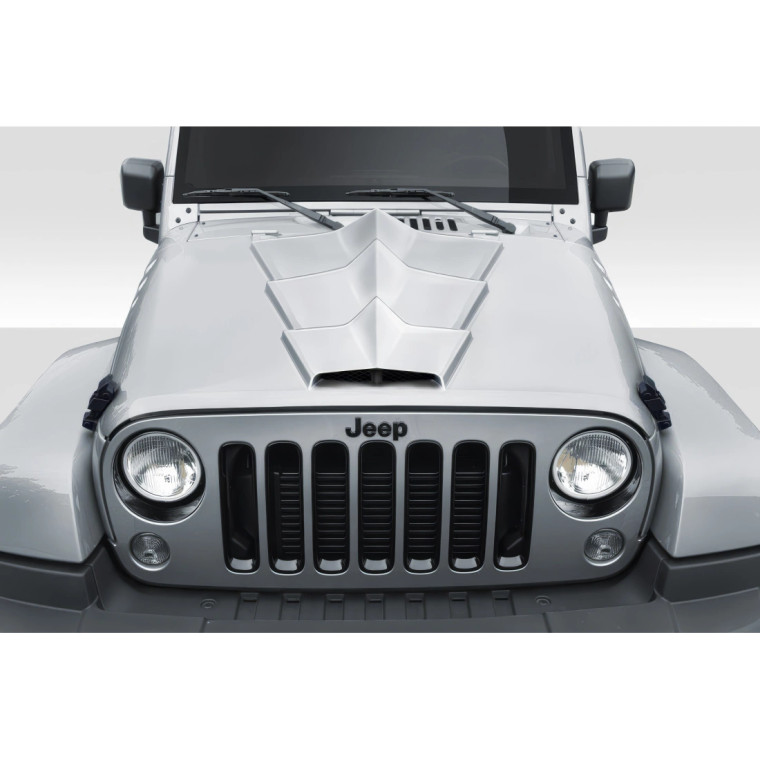 Upgrade your 2007-2018 Jeep Wrangler with the JK Tyrano Hood from Duraflex, a top-tier accessory designed to enhance both the appearance of your vehicle. This Hoods is meticulously engineered to complement your vehicles aerodynamics potentially offering increased downforce and stability.