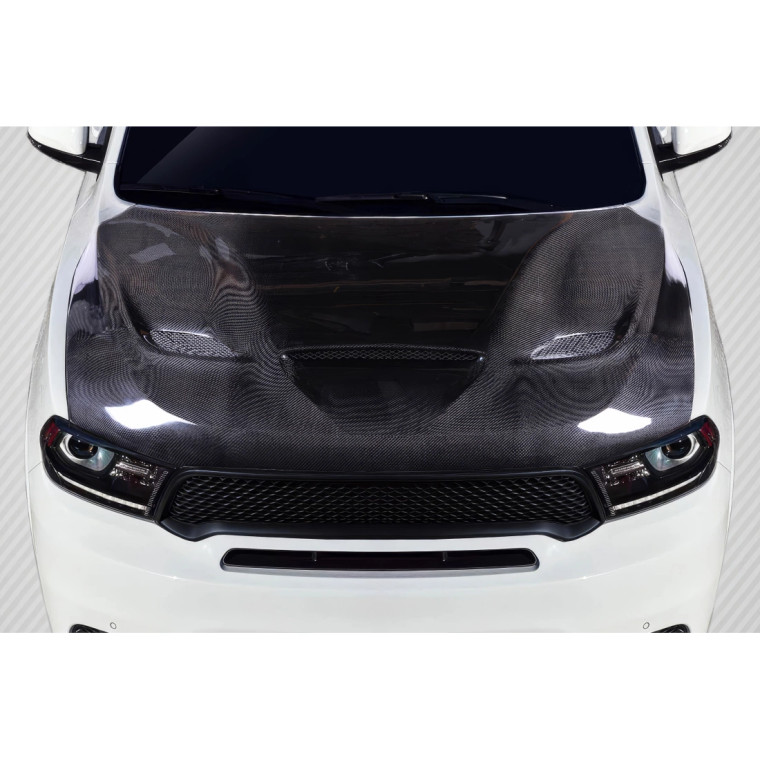 Introducing the SRT Hellcat Look Hood for the 2011-2023 Dodge Durango, a perfect blend of style and performance from Carbon Creations. This custom Hoods with proper installation is designed to enhance the aerodynamics of your vehicle, providing improved downforce and stability at high speeds depending on the design. Rarely seen on the street, the SRT Hellcat Look Hood is made from Carbon Fiber materials and offers a unique custom style.