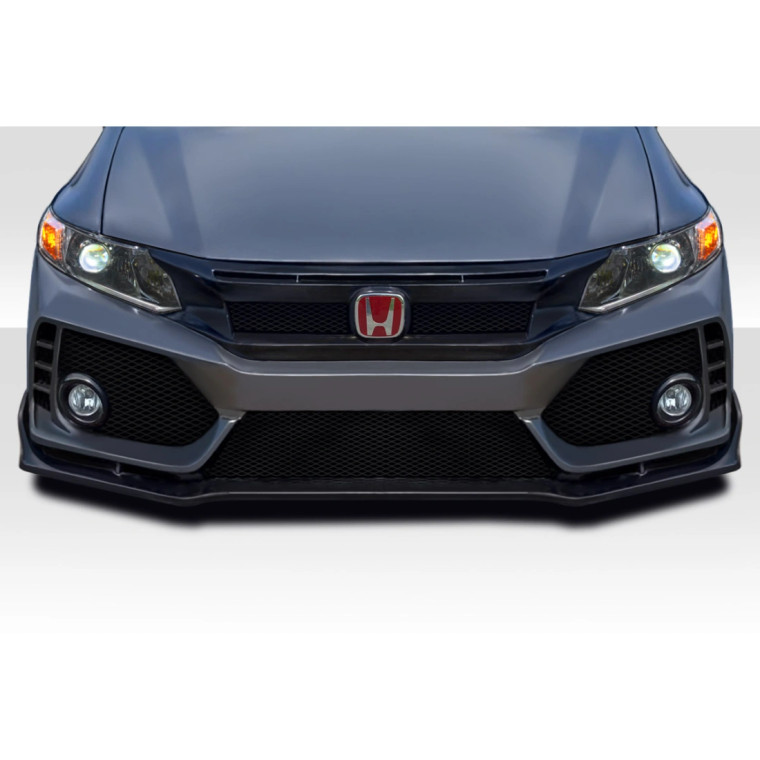 The 4DR FK8 Type R Look Front Bumper is engineered with precision to complement the vehicle's existing profile.