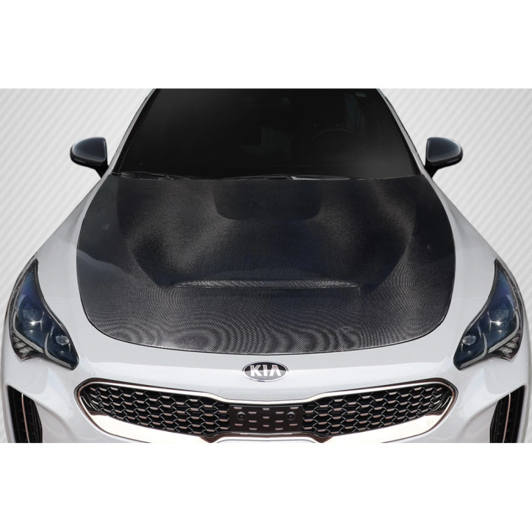 Introducing the KiaGTS Look Hood for the 2018-2023 KIA Stinger, a perfect blend of style and performance from Carbon Creations. This custom Hoods with proper installation is designed to enhance the aerodynamics of your vehicle, providing improved downforce and stability at high speeds depending on the design. Rarely seen on the street, the KiaGTS Look Hood is made from Carbon Fiber materials and offers a unique custom style.