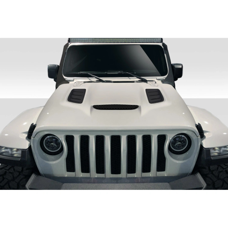 Elevate the appearance of your 2018-2025 Jeep Gladiator with the Wrangler JLJT Vortex Look Hood from Duraflex, a visually striking addition designed for the modern enthusiast. Crafted from top-tier FRP materials, the Wrangler JLJT Vortex Look Hood offers a bold, aggressive aesthetic.